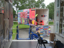 In drei Möbelcontainern präsentiert sie VorSichtSchön (Arbeit des Häkelkreises), den Kunstkasten (Galerie mit Bildern und Grafiken) und Schattenzelte (kinetische Installation von Hans Schohl).
