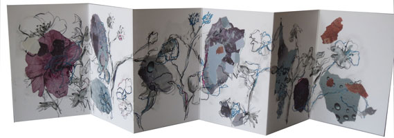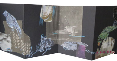 Die Knicke der Faltbücher ignoriert sie, so dass beim Aufschlagen zweier, dreier oder mehrer Seiten immer wieder neue Szenerien entstehen.