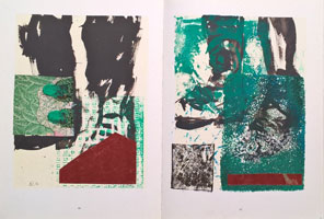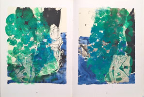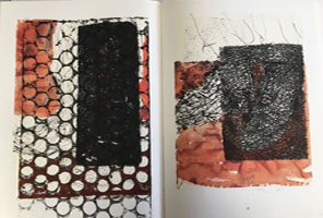 Sie übermalt, bedruckt, collagiert und/oder zeichnet. Mal entsteht weniger Gegenständliches, mal vorwiegend Abstraktes, mal auch nur eine über alle Seiten hinweggehende Zeichnung.