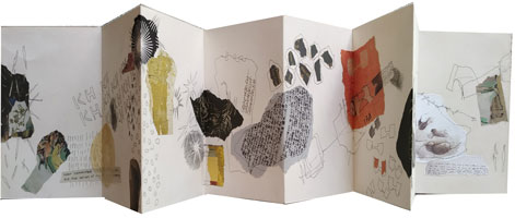 Liesel Haber illustriert vorgefertigte oder aus verschiedensten Papieren selbst erstellte Leporellos und, wo immer sie ein gefaltetes Werbeblatt entdeckt, nimmt sie es mit und verändert es.