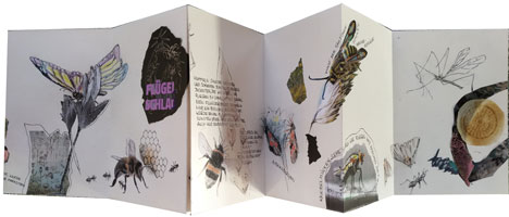Das Leporello Jede Mücke zählt hat das Insektensterben zum Thema, das Liesel Haber seit Anfang 2019 beobachtet. Die Arbeit Januar 2013 ist eine Folgearbeit des Besuches Der Documenta 14 in Kassel.